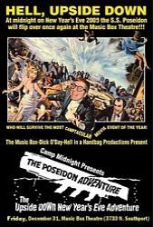 Beginning in December of 2008 the Camp Midnight series presented the best of the worst in camp movies on a seasonal basis. Camp Midnight presentations were hosted by the camp-tacular emcee Dick O'Day and featured David Cerda, playwright and Artistic Director of the theatrical parody group Hell in a Handbag Productions along with Handbag star Ed Jones. Camp Midnight presented annual screenings of The Poseidon Adventure (on New Year's Eve) and Mommie Dearest on Mother's Day in addition to special, one of a kind screening events. Click on the photos below to go to individual pages for background on previous Camp Midnight screenings. |