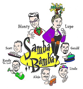 | Run for the maracas, get out the cocktail shaker and prepare to be “samba-sized.” Samba Bamba! is the wacky, “Sergio Mendes meets the B-52’s” 8-piece Latin-flavored, martini swilling, retro crazy band. Samba Bamba! was formed in 1994 by Richard Knight, Jr. as an homage to the music of Sergio Mendes & Brazil ‘66. Knight, a comedic performer, known to audiences for his work with the Annoyance Theater and TV’s “Wild Chicago” as his Dick O’Day persona, envisioned a character-driven band supported by top musicians. Monty “Sugarloaf” Mattachine (portrayed by Knight), Lupe Lowenstein (portrayed by Jen Zias) and Lindo McCartney (portrayed by Victor Salvo) front the five supporting musicians, Scott Stevenson (keyboards), Steve Dollinger (guitar), Randy Henry (bass), Alejo Poveda (percussion), and Gerald Dowd (drums). Onstage, Monty, Lupe and Lindo lead the band in their colorful, unique interpretations of whatever happens to strike their fancy – or whatever their audiences are clamoring for. “Lust for Samba,” their critically acclaimed CD, was released in 1997. Click HERE to read a review of a recent club appearance and see photos of the band in action. Booking information |